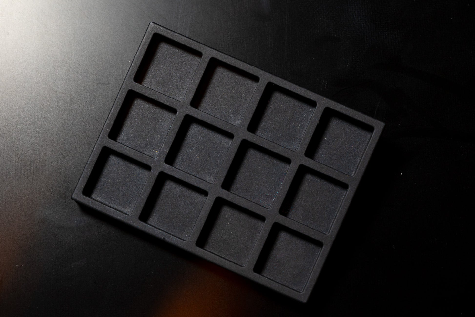 This is a 100% resin cast artisan tray that can hold up to 12 artisan keycaps. This time around it is themed after GMK Cosmos. Kaptain Mike really liked the solid black design and so that's what Im going to go with. What better way to showcase your Cosmos artisans than with a custom Cosmos artisan tray?
