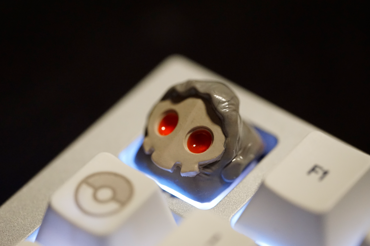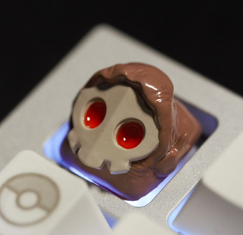Duskey has appeared! Duskey is known to have scarlet eyes that make even burly grown-ups freeze in utter fear. This keycap is heavily influenced by "Duskull" and features shine through elements (the eyes allow for RGB/light to pass through)!