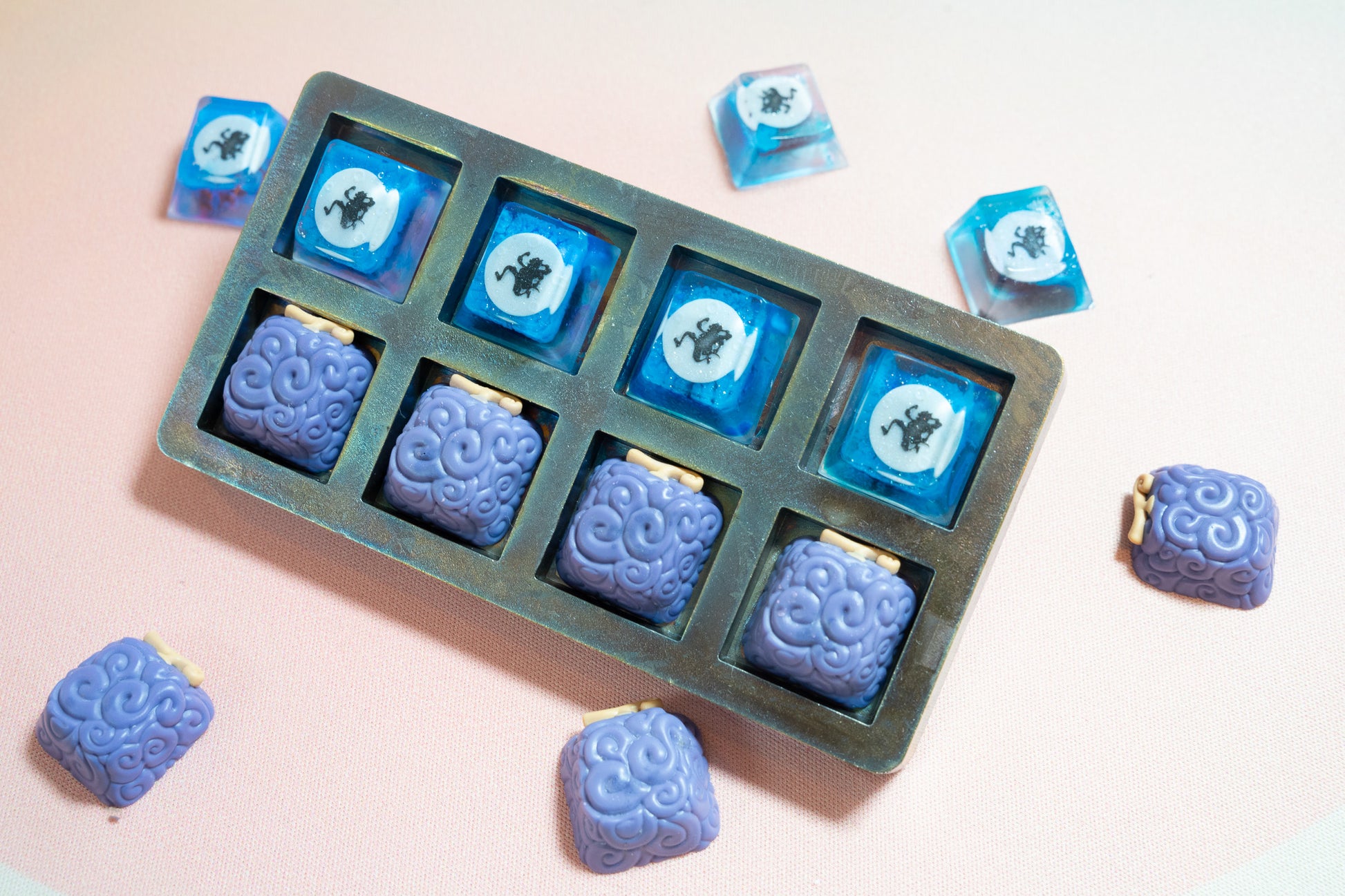 JOYBOY IS HERE! We have all seen the amazing silhouette of Joyboy as he jumps through the serene Wano night sky. These are encapsulated resin blanks that have been sanded to 30k sanding grit. They feature UV-reactive dyes that turn purple in the presence of sunlight - just like the Wano sky! Bang on this artisan like you would the drums of liberation.